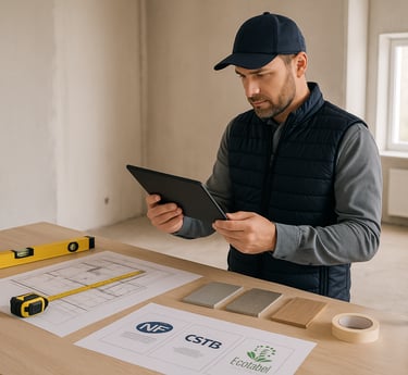 Nous travaillons exclusivement avec des fournisseurs reconnus pour la durabilité et la performance de leurs produits (labels NF, CSTB, écolabels).Artisans certifiés et formés