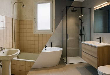 Vous souhaitez moderniser une salle de bains ancienne ? Nous remplaçons sanitaires, meubles, revêtements et équipements pour lui donner un style contemporain, pratique et confortable.